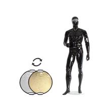 Стальной упругий каркас прошит по периметру капроновым карманом, диаметр отражателя в сложенном виде – 20 см. Две рукоятки, закрепленные на каркасе, оборудованы отверстиями с резьбой 1/4", что позволяет закрепить отражатель на штативах или любых опорах без использования специального держателя.