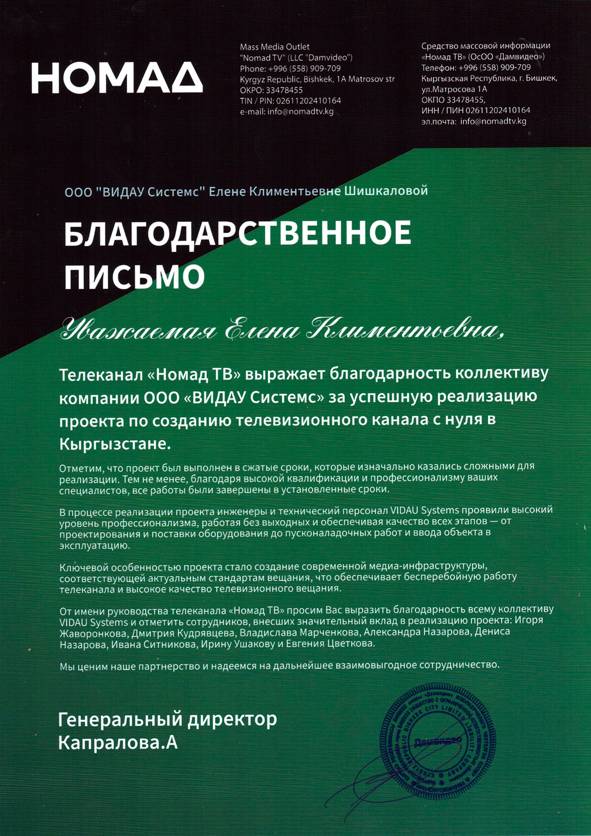 Наша компания является действительным членом АКТР (Ассоциации Кабельного Телевидения России); обладает допусками СРО в области строительства и всеми необходимыми сертификатами на право обучения работе с новым оборудованием и современными технологиями в сферах медиа и безопасности.