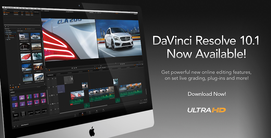 Компания Blackmagic Design объявила о выпуске версии 10.1 программы DaVinci. В эту версию добавлены новые функции редактирования и стереоскопические 3D-возможности, а также поддержка Final Cut Pro X 10.1. Версия 10.1 доступна для бесплатной загрузки всем существующим клиентам DaVinci Resolve с веб-страницы Blackmagic Design.