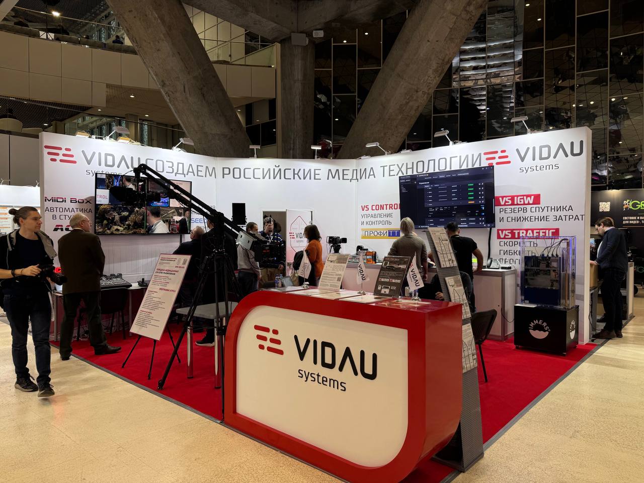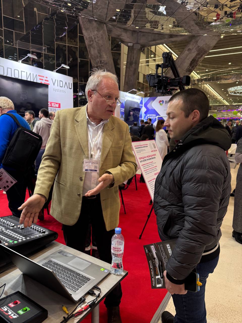 Именно работающие решения стали главной точкой притяжения. Посетители надолго задерживались, чтобы лично убедиться: IP-студия на базе ПО действительно микширует «винегрет» форматов в реальном времени, робокран движется с немыслимой плавностью, а софт на «Эльбрусе» не «демонстрируется», а работает. Вопросы звучали конкретные: «Когда можно внедрять?», «Как интегрировать с нашим парком?». Это был разговор не о возможностях, а о сроках и деталях внедрения. Внимание привлекла не громкая заявка, а тихая уверенность работающих систем.