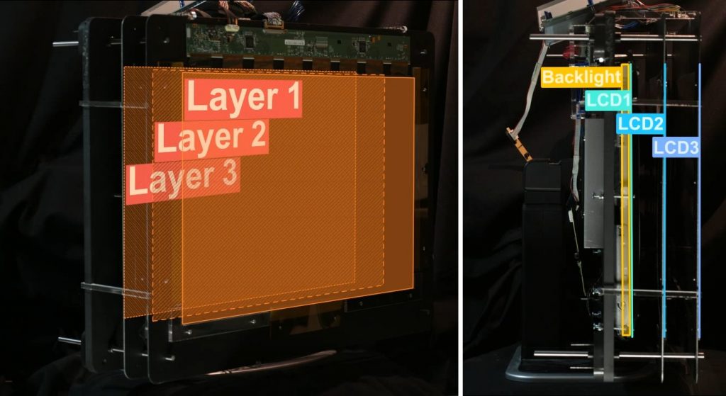 На конференции по компьютерной графике Siggraph исследовательская группа МТИ представила Tensor Display, использующий три ЖК-панели. Еще одна из разработка основана на двух ЖК-панелях, между которыми располагается лист линз для создания стереоскопического эффекта.