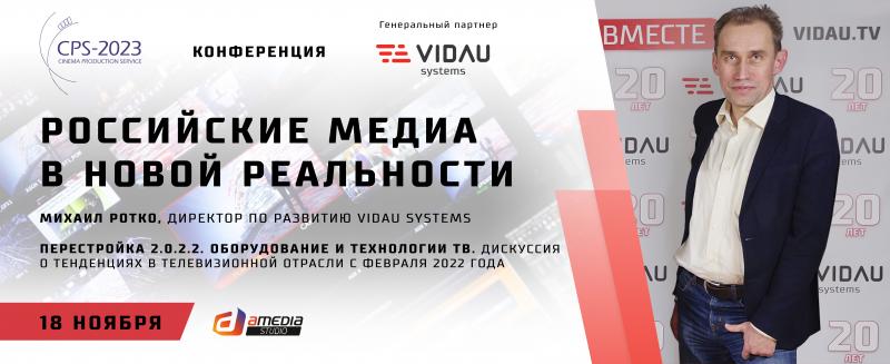 18 ноября 2022 года на территории киностудии Амедиа оргкомитет выставки CPS-2023, компания VIDAU Systems и киностудия АМЕДИА представят отраслевую конференцию на тему «Российские медиа в новой реальности: кинопроизводство и вещание».