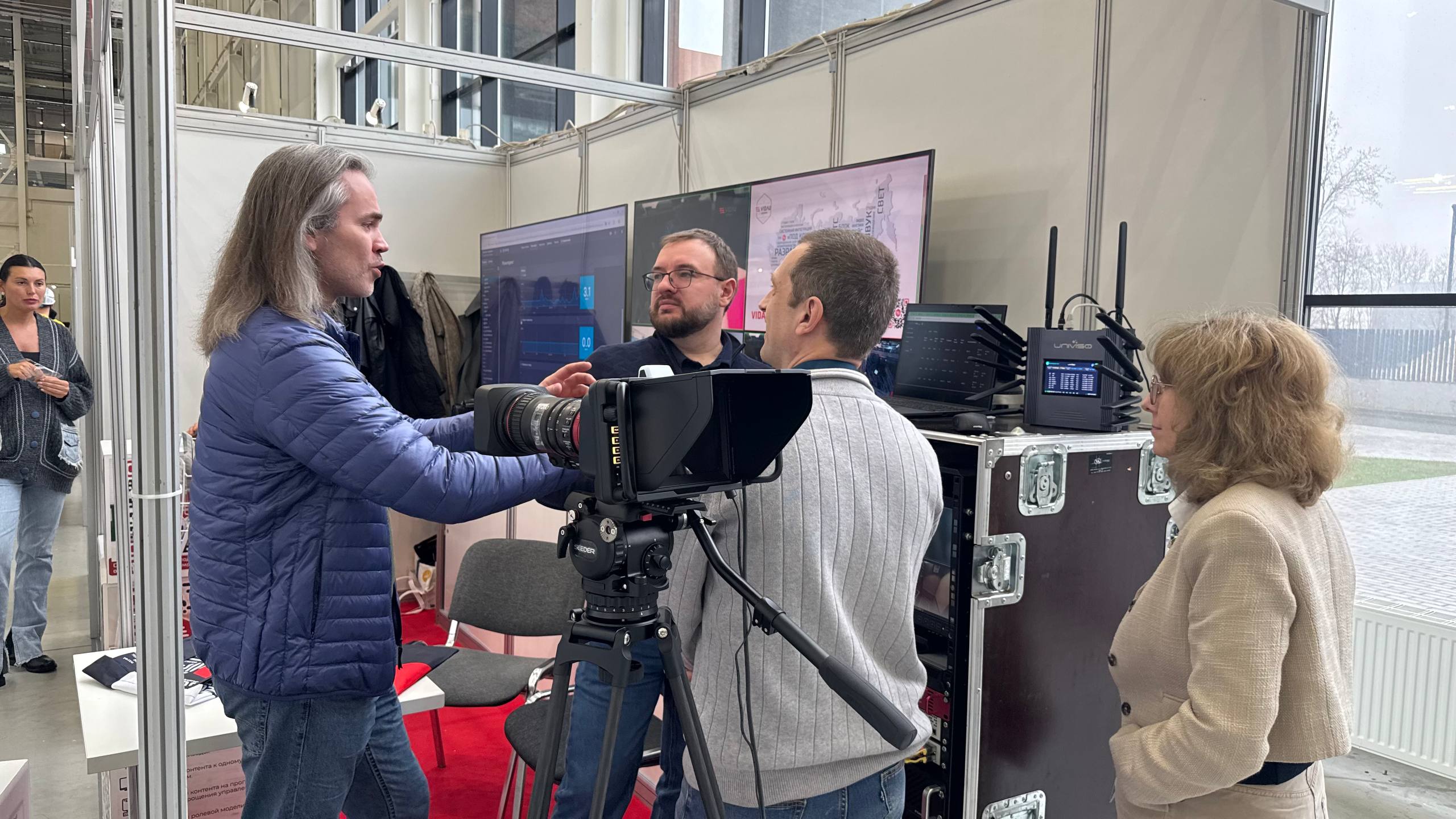 Впервые на выставке показана «живая» связка: сигнал с реального движущегося объекта передавался через радиоканал, обрабатывался шлюзом и выводился на экран без артефактов. Решение идеально для съемок с подвижных платформ (дроны, транспорт, спецтехника), где радиоканал часто является единственным доступным средством доставки сигнала.