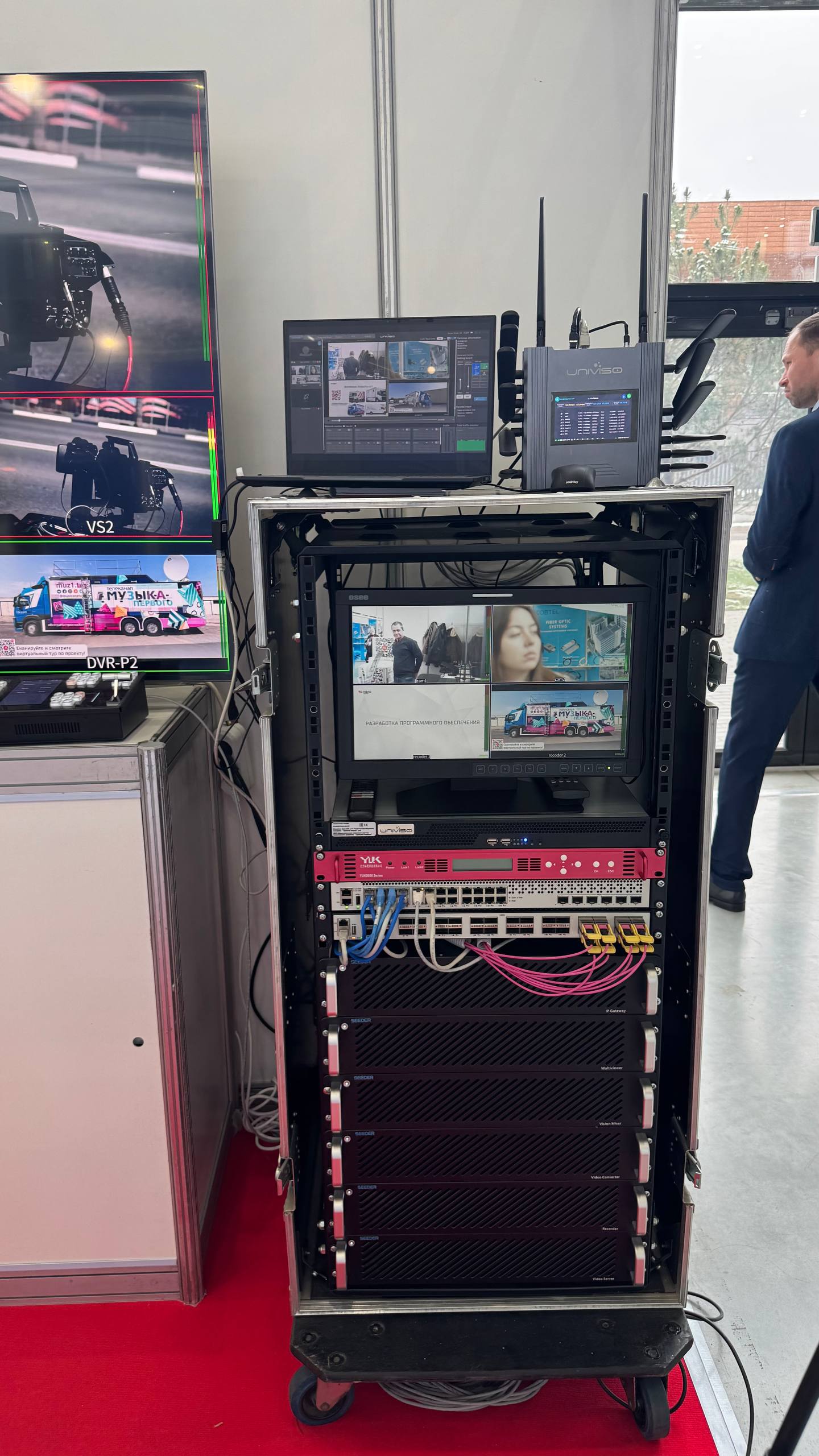 На стенде была развернута компактная полностью рабочая конфигурация АСБ на базе оборудования SEEDER — не презентация, а реальный IP-ориентированный комплекс для HD/UHD-производства.