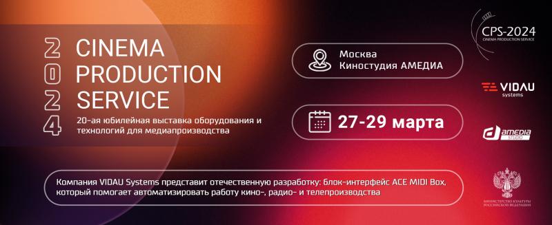 27-29 марта 2024 года на территории киностудии «АМЕДИА» пройдет международная выставка оборудования и технологий для медиапроизводства CPS-2024 .