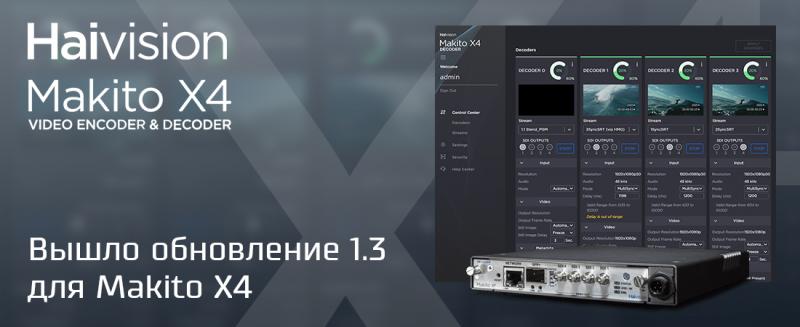 Хорошая новость для всех пользователей Makito X4, 25 августа компания Haivision анонсировала для него обновление 1.3.